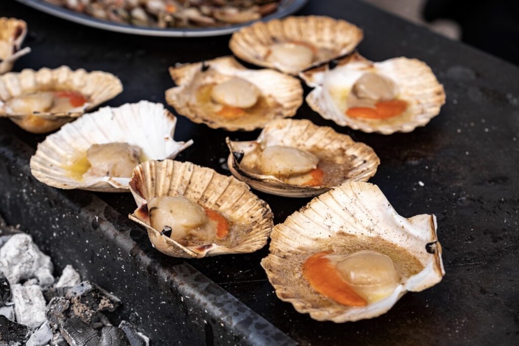 - Grilování: Mušle položte na rozpálenou vnitřní část plotny. Grilujte je zhruba 1,5 až 2 minuty z jedné strany, dokud se nevytvoří karamelová krusta. Poté je otočte a nechte dojít už jen minutu z druhé strany.